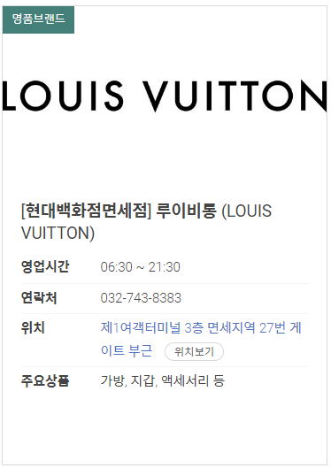 인천공항 면세점 루이비통 연락처 Tel :032-743-8383