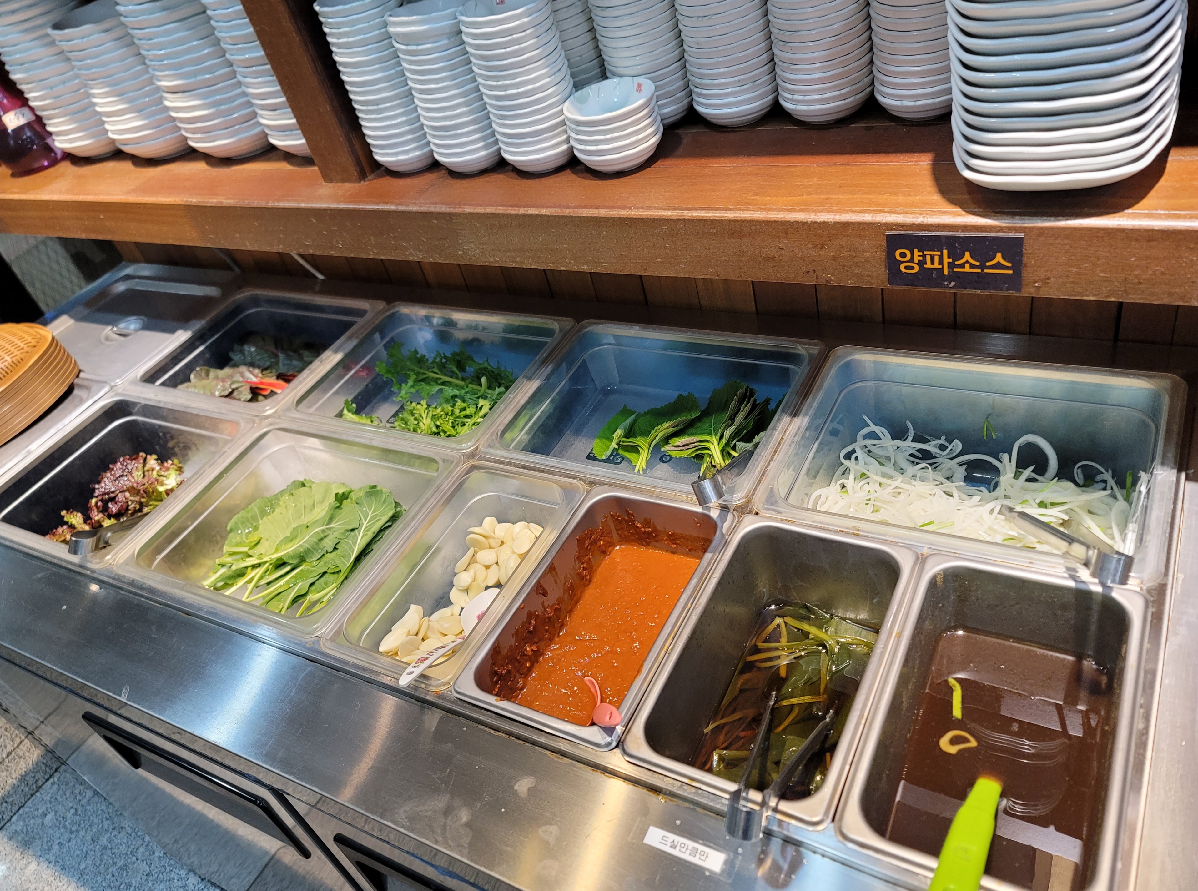 쌈채소와 양파소스까지 있으니 야채를 좋아하시는 분들은 눈치 보지 않고 가져다 먹을 수 있어서 좋네요.