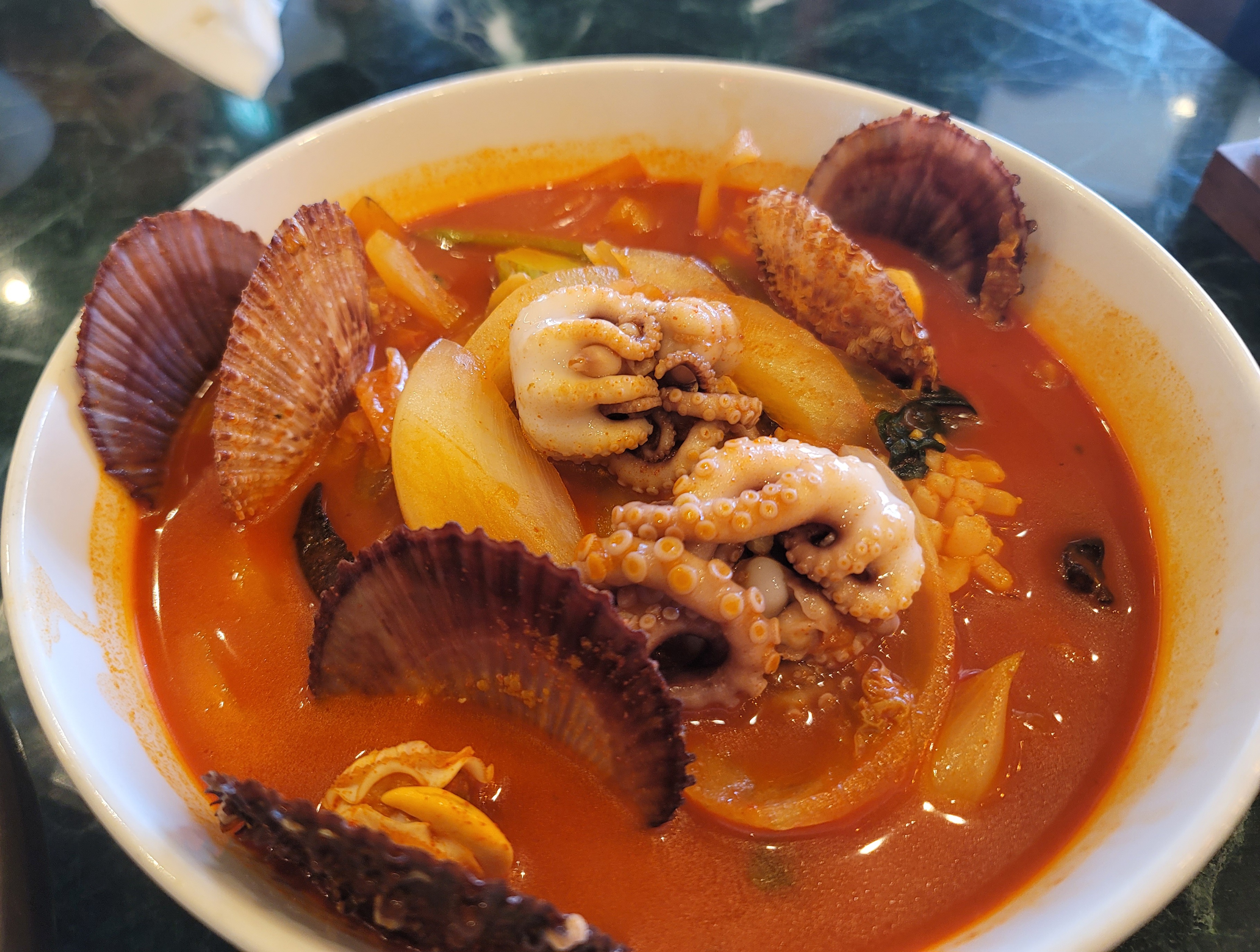 삼선 가리비 짬뽕은 가리비가 3개 들어가 있고 해산물이 풍부하게 들어가 있습니다.