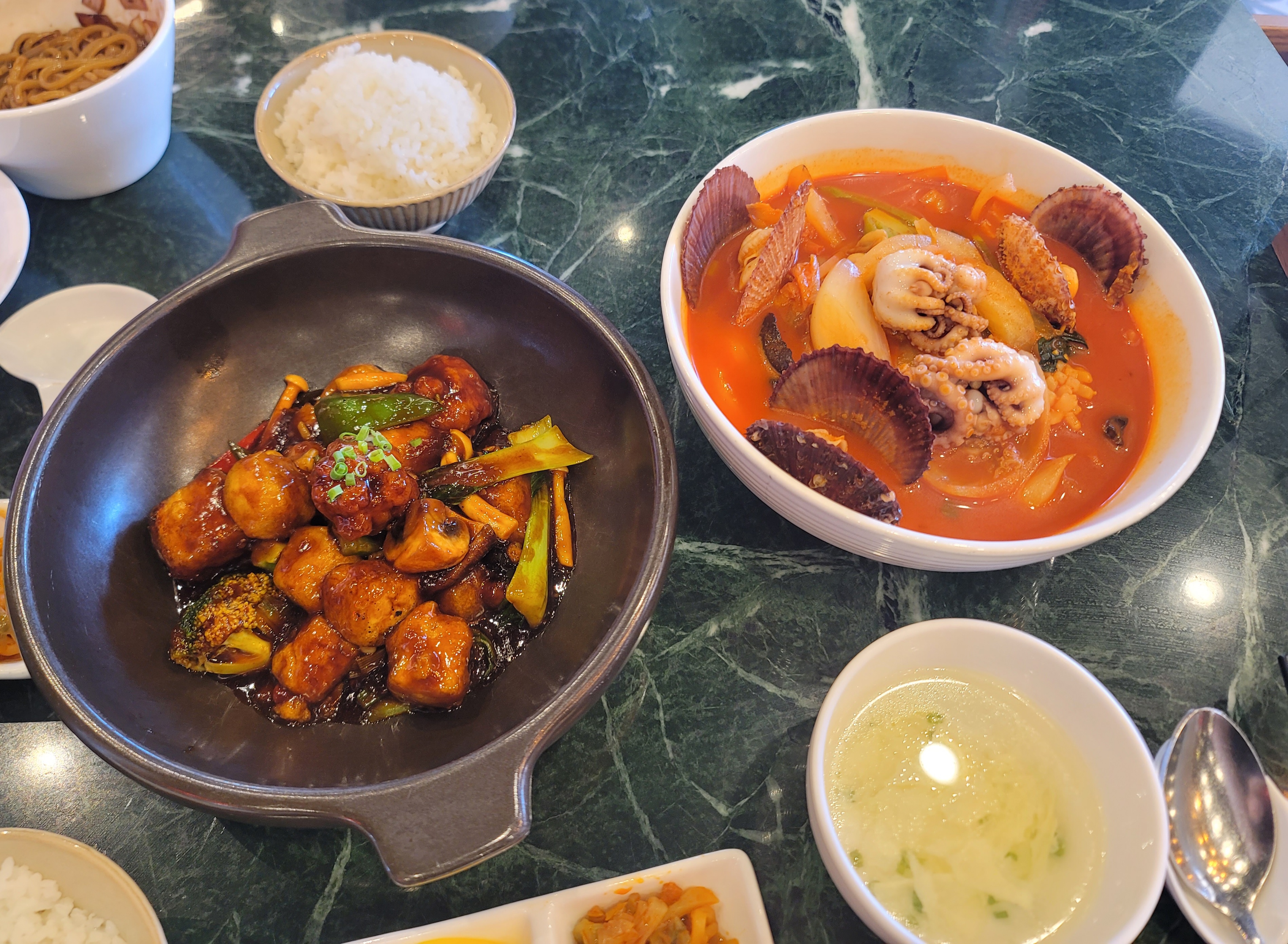 주문은 공깃밥하나에 삼선 가리비 짬뽕, 그리고 완자 마파두부 덮밥을 주문했습니다.