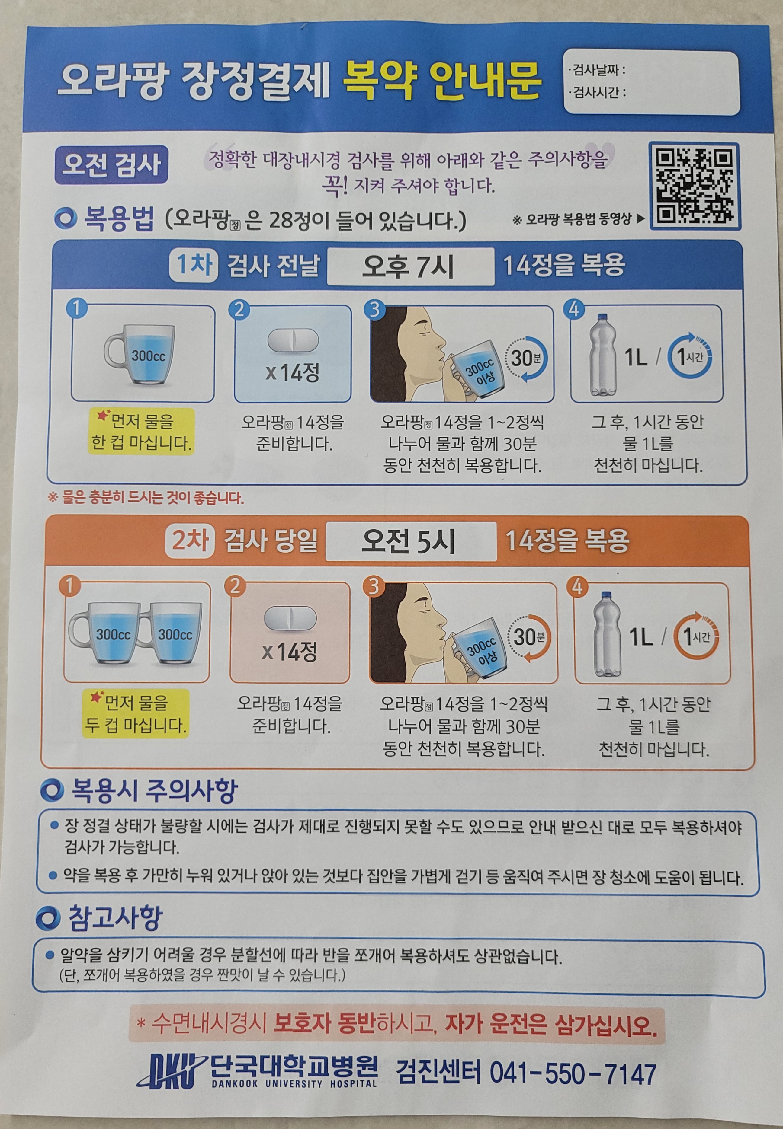 대장내시경이 포함되어 있는 내시겨이라 검사 전에 약을 먹을 수밖에 없는 상황