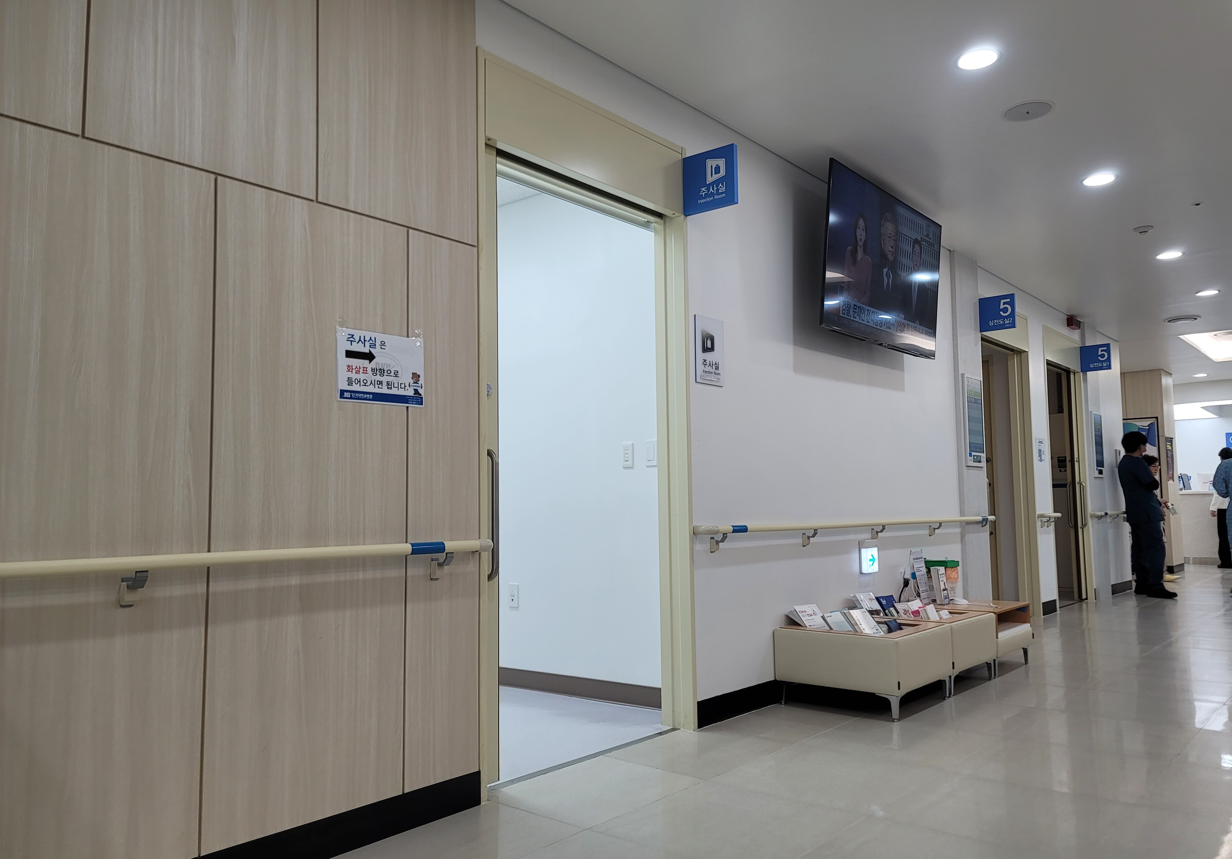 검진받는 곳의 풍경이고 안내해 주는 검사실 앞에 앉아있으면 편하게 호출받아 검사를 받을 수 있습니다.