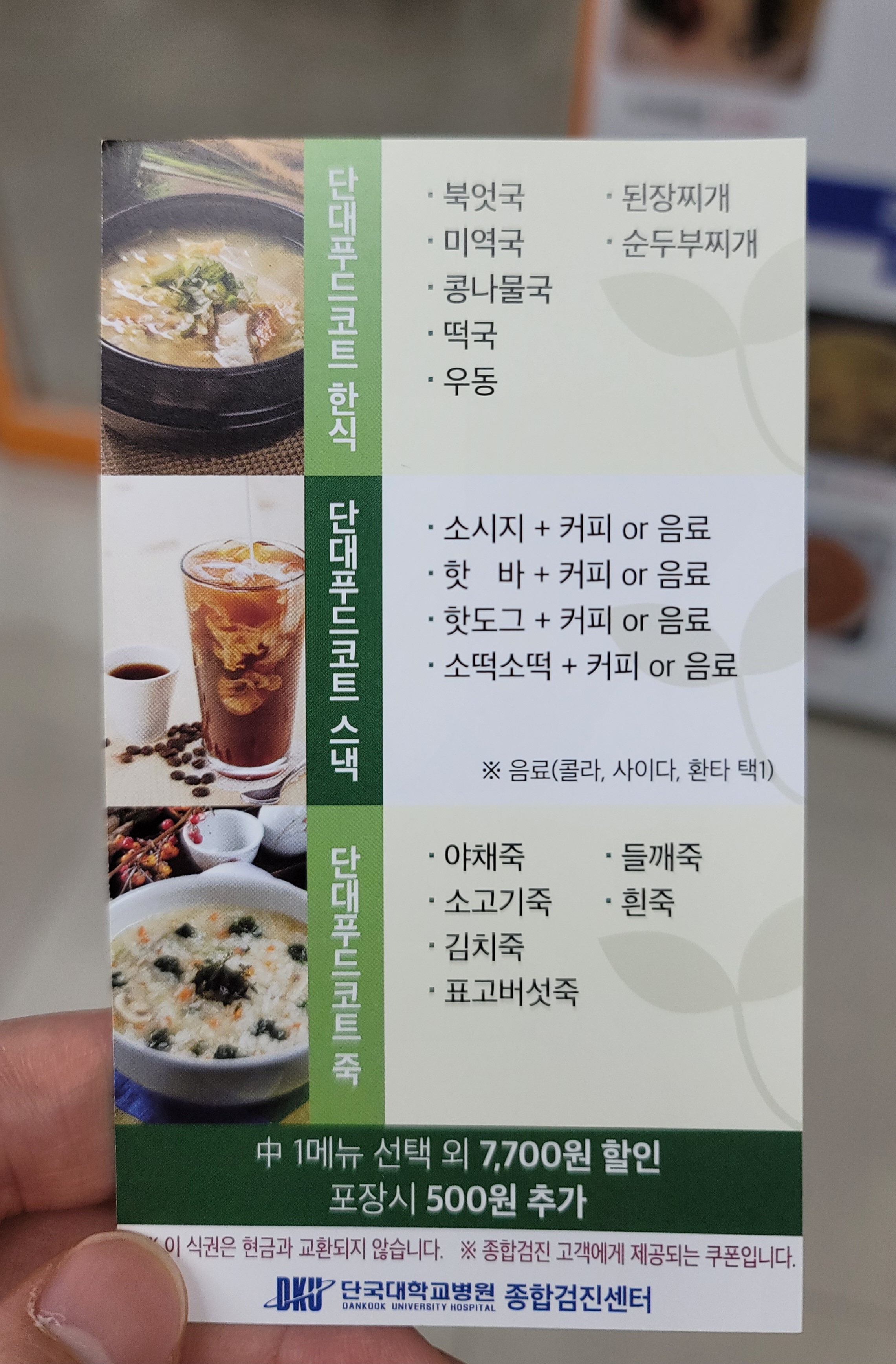 다만 검진센터에서 주는 식권은 하닉과 죽, 그리고 스낵코너만 사용할 수 있어 조금 아쉬웠네요.
