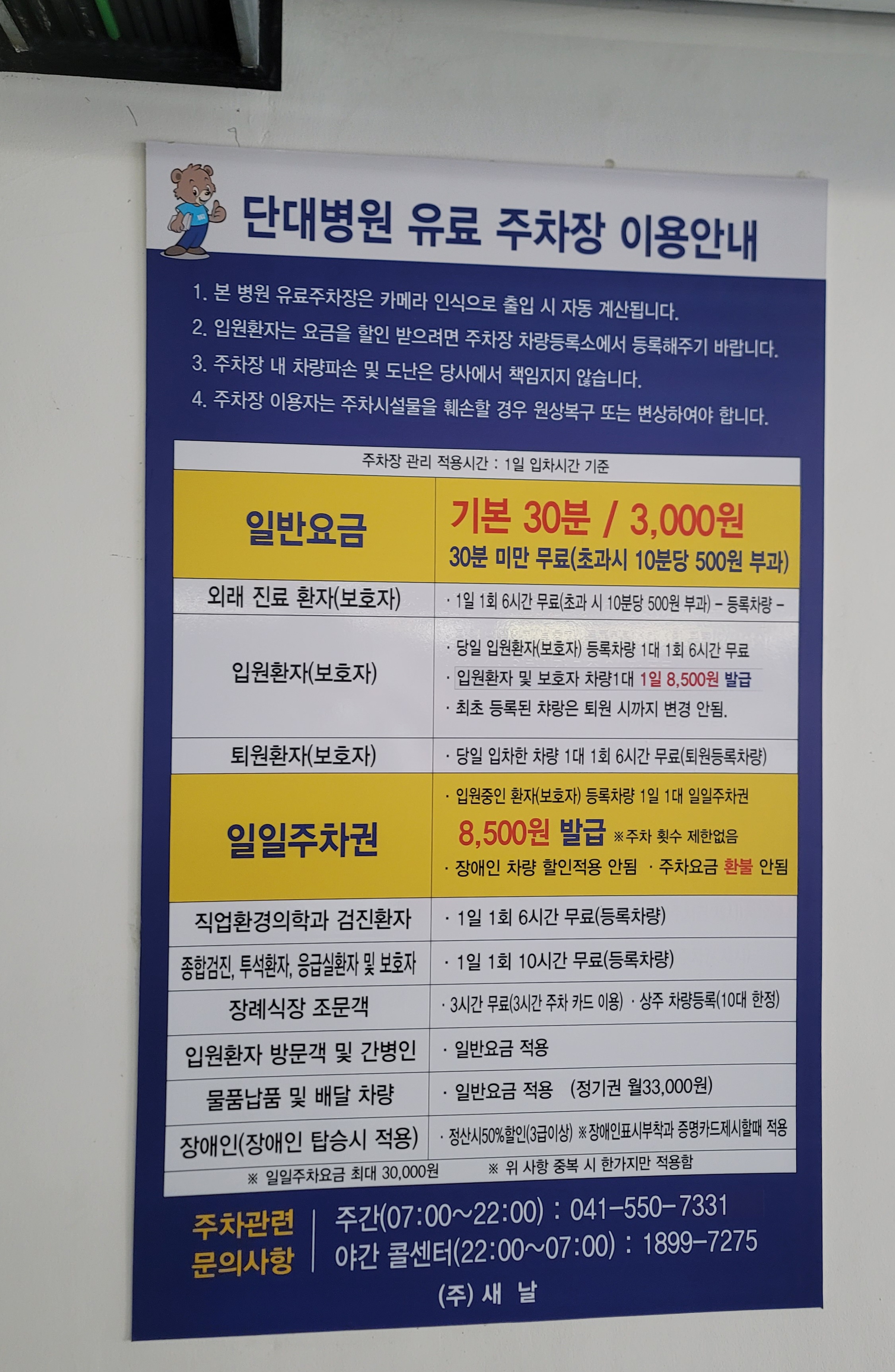 단국대병원 주차장은 평일 오전에 갔을 때 많이 비어있는 상황이어서 주차는 편하게 했습니다.