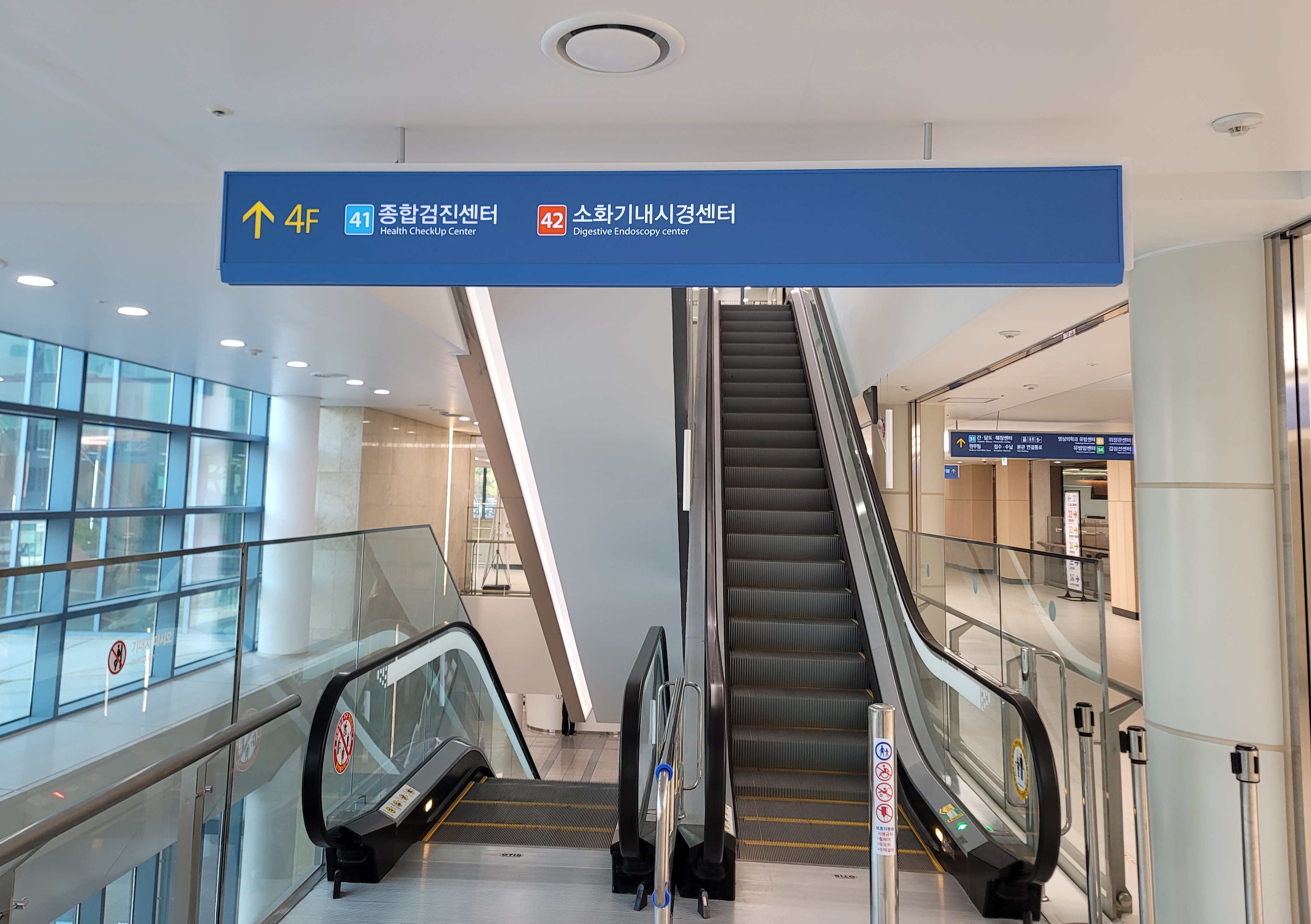 에스컬레이터를 타고 올라가면 보이는 종합검진센터.