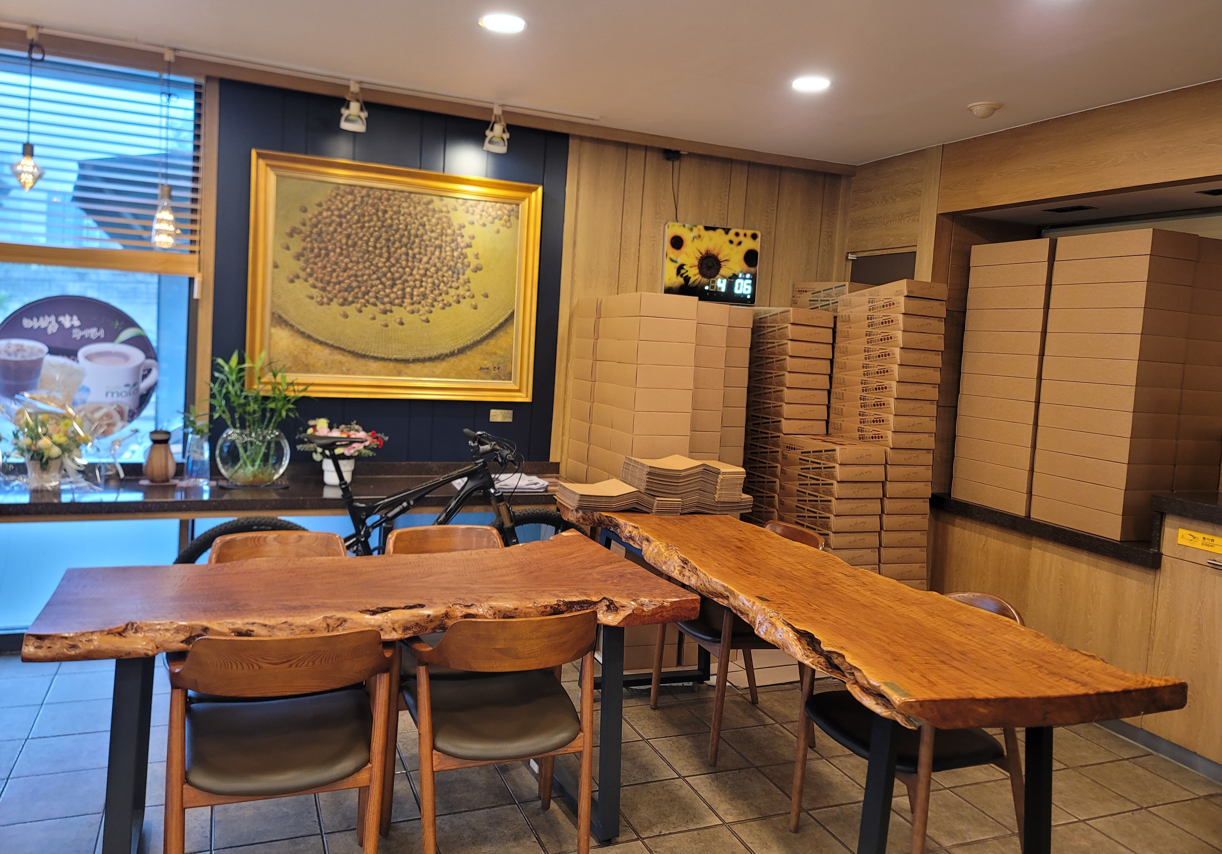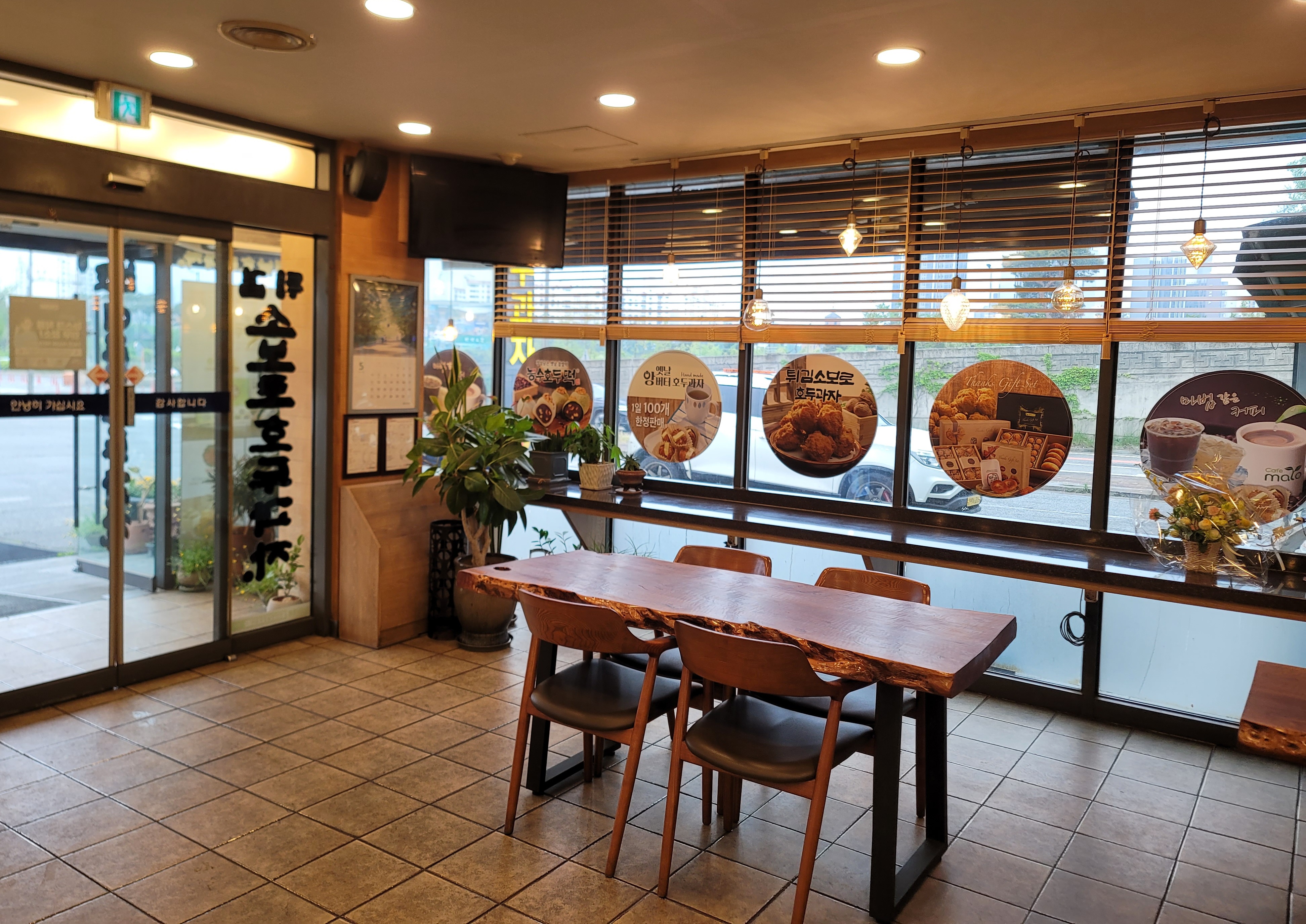 매장 안에는 식탁도 준비되어 있어 커피 한잔과 함께 호두과자를 간식으로 즐길 수 있는 공간도 마련되어 있습니다.